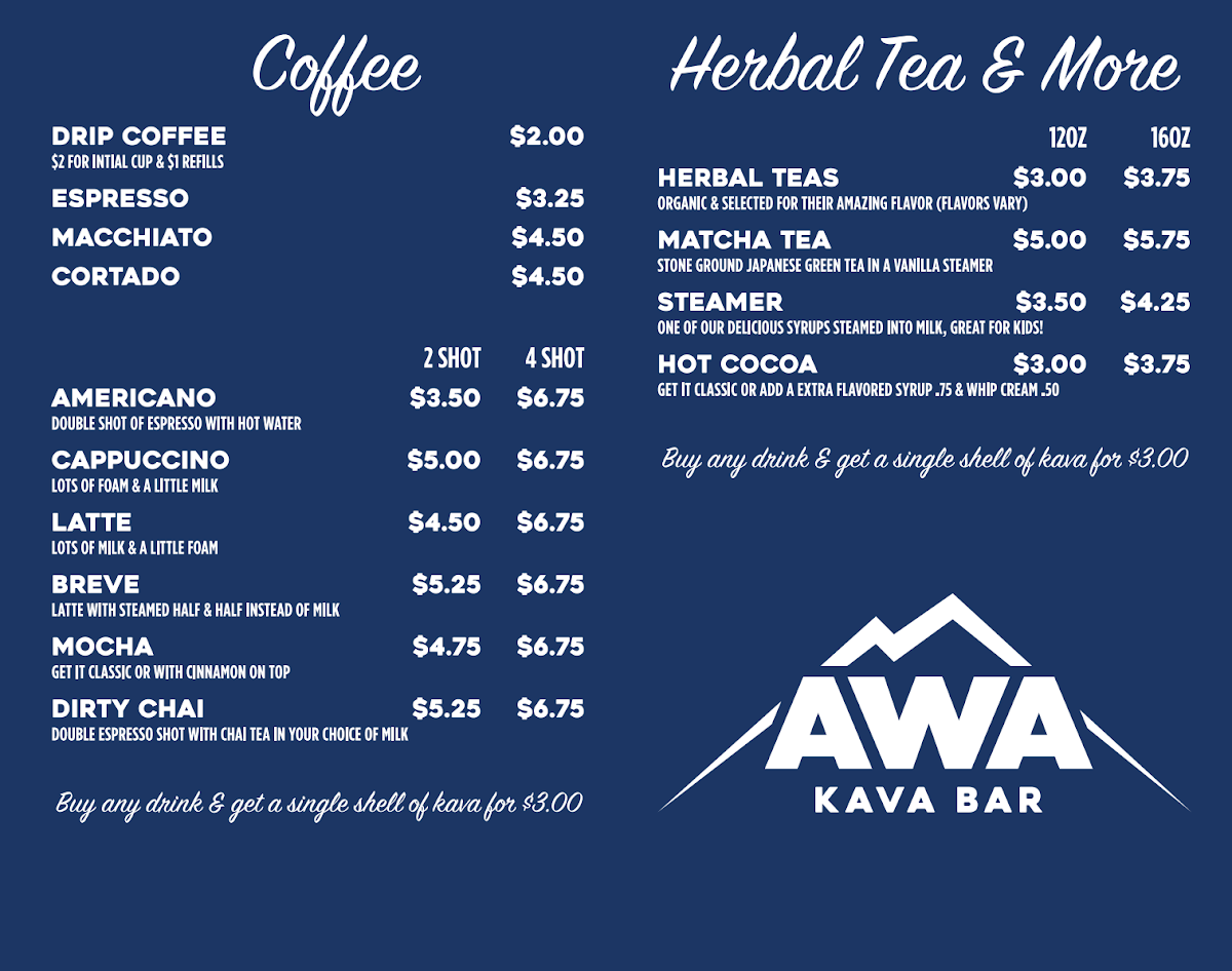 Welcome to Awa Kava & Coffee, a charming spot in Flagstaff, AZ, where the relaxed beach vibe meets exceptional beverages. Located on 218 S San Francisco St, this kava bar and coffee haven is a true gem for those seeking community and comfort.